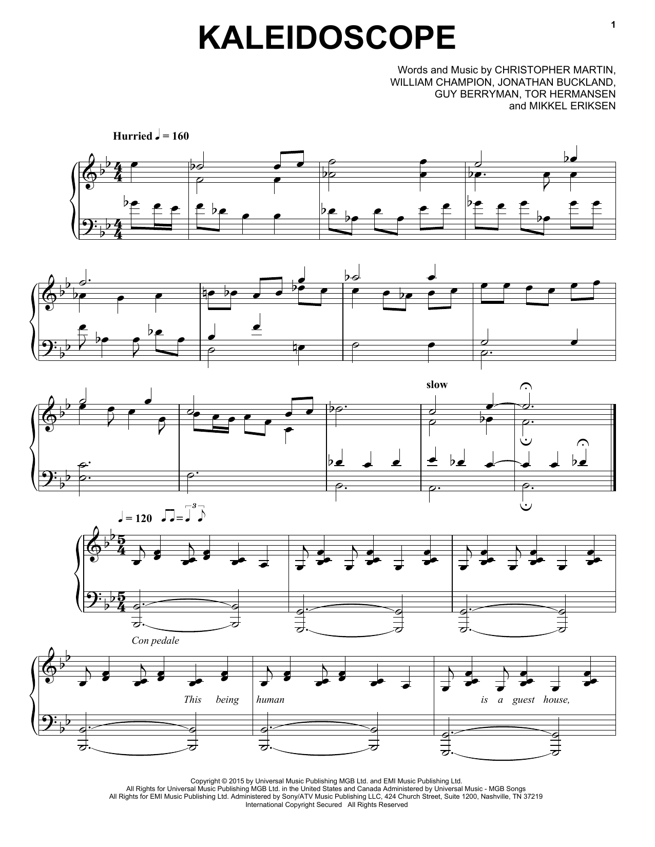 Download or print Coldplay Kaleidoscope sheet music, chords and digital score arranged for Piano, Vocal & Guitar Chords. This Pop score includes 2 page(s).