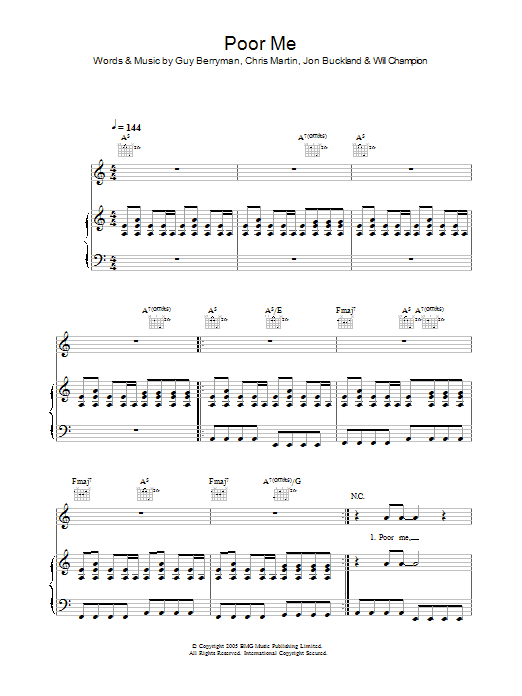 Download or print Coldplay Poor Me sheet music, chords and digital score arranged for Guitar Tab. This Pop score includes 5 page(s).
