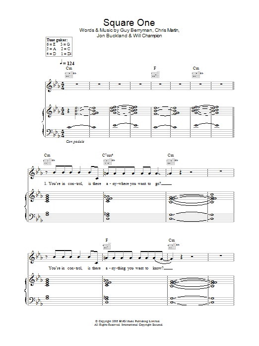 Download or print Coldplay Square One sheet music, chords and digital score arranged for Guitar Chords/Lyrics. This Rock score includes 3 page(s).
