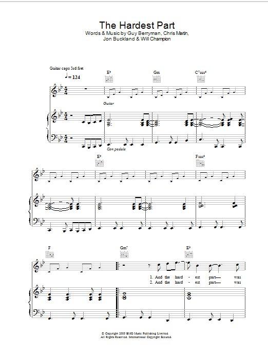 Download or print Coldplay The Hardest Part sheet music, chords and digital score arranged for Piano Solo. This Pop score includes 5 page(s).