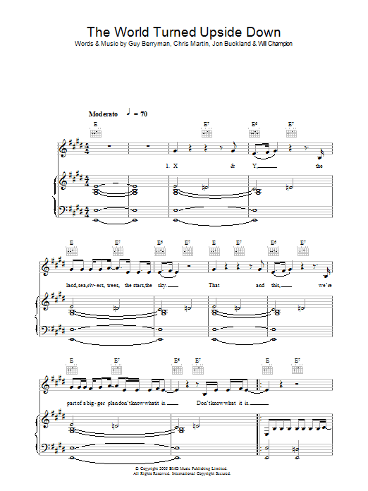 Download or print Coldplay The World Turned Upside Down sheet music, chords and digital score arranged for Guitar Tab. This Pop score includes 4 page(s).