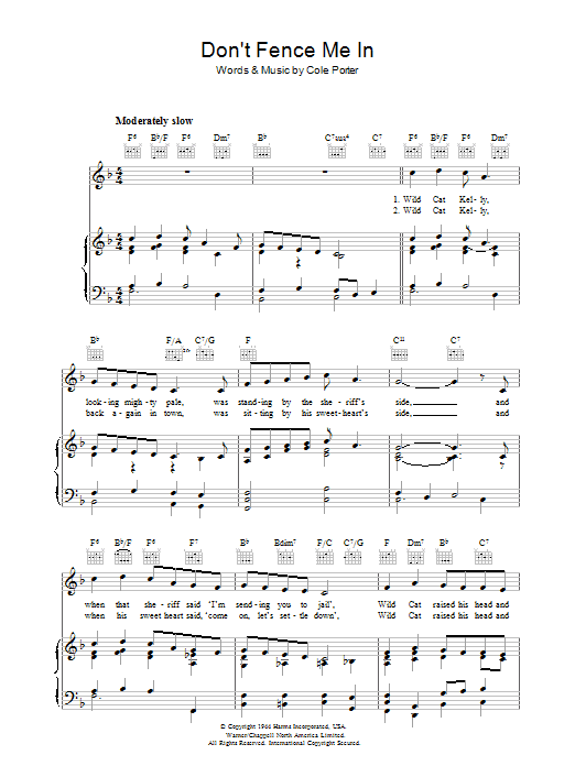 Download or print Cole Porter Don't Fence Me In sheet music, chords and digital score arranged for Easy Piano. This Jazz score includes 3 page(s).