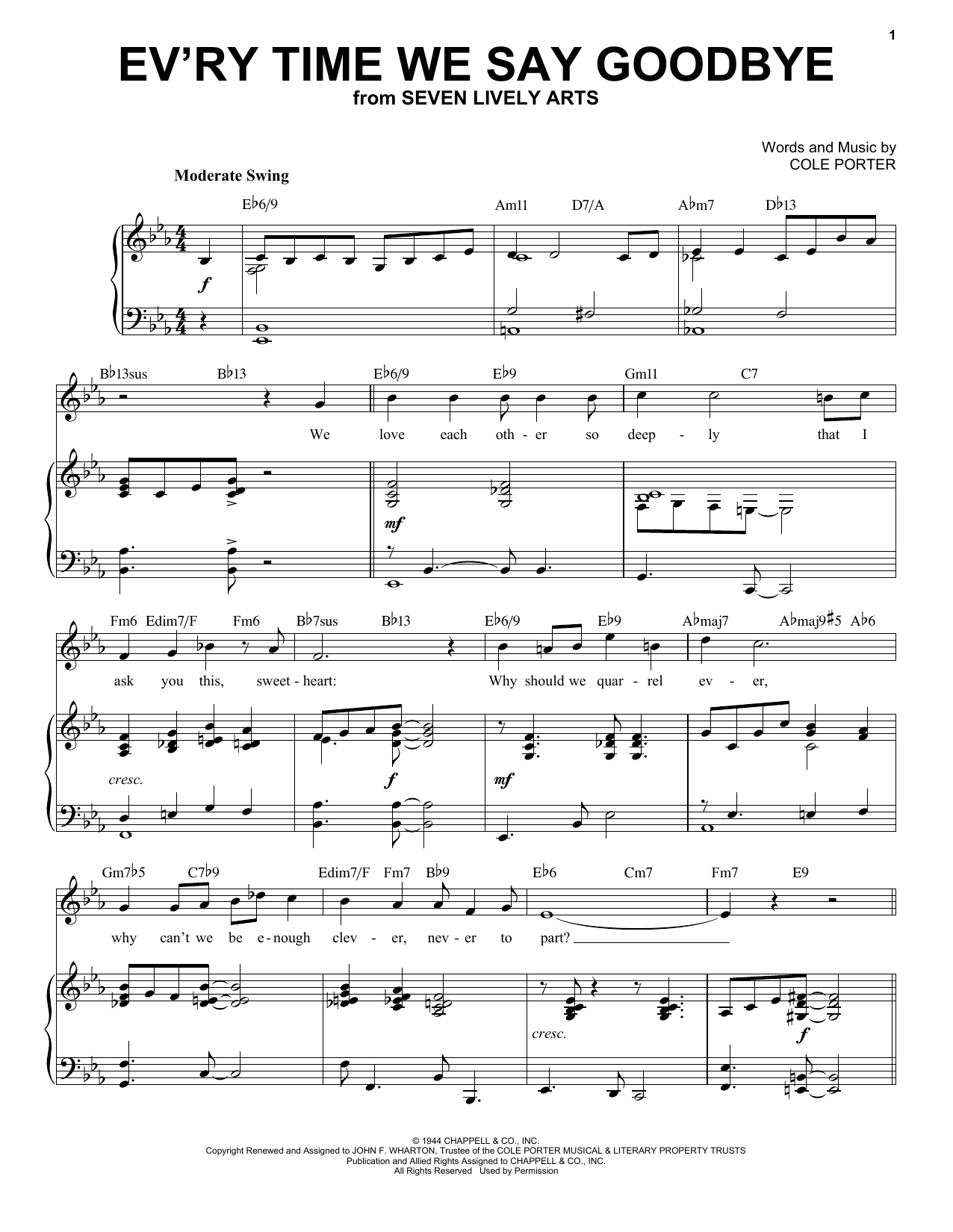 Quick facts Ev'ry Time We Say Goodbye [Jazz version] (from Seven Lively Arts) (arr. Brent Edstrom) about digital sheet music