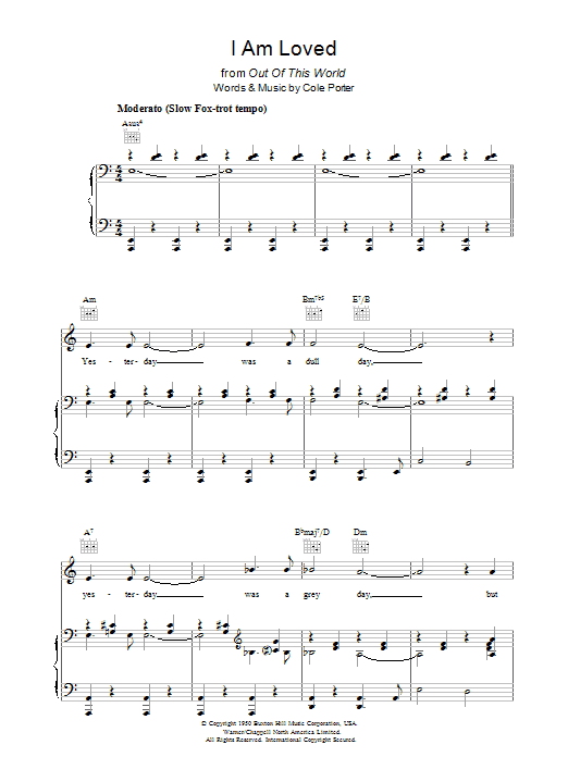 Download or print Cole Porter I Am Loved sheet music, chords and digital score arranged for Piano, Vocal & Guitar Chords. This Jazz score includes 7 page(s).