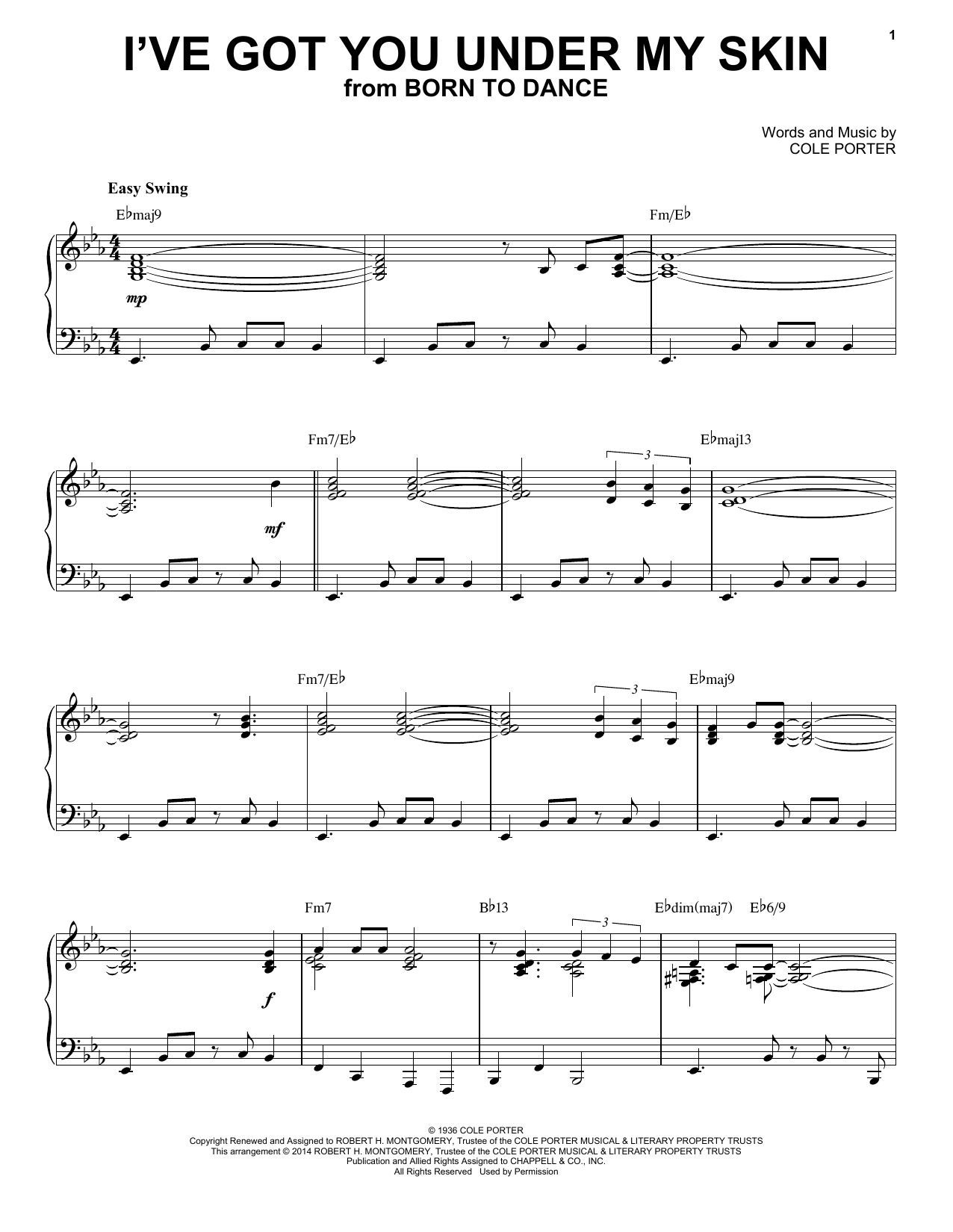 Download or print Cole Porter I've Got You Under My Skin [Jazz version] (arr. Brent Edstrom) sheet music, chords and digital score arranged for Piano Solo. This Jazz score includes 4 page(s).