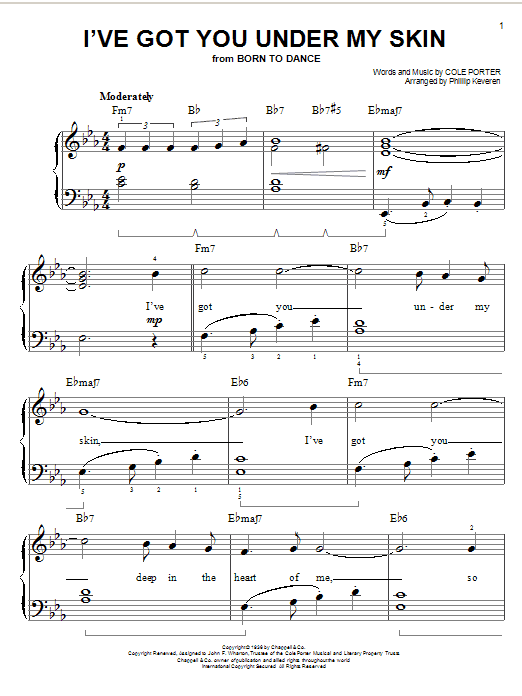 Download or print Cole Porter I've Got You Under My Skin (arr. Phillip Keveren) sheet music, chords and digital score arranged for Easy Piano. This Jazz score includes 5 page(s).