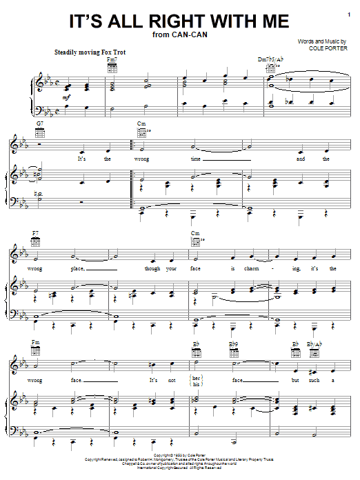 Download or print Cole Porter It's All Right With Me sheet music, chords and digital score arranged for Piano, Vocal & Guitar Chords. This Jazz score includes 6 page(s).