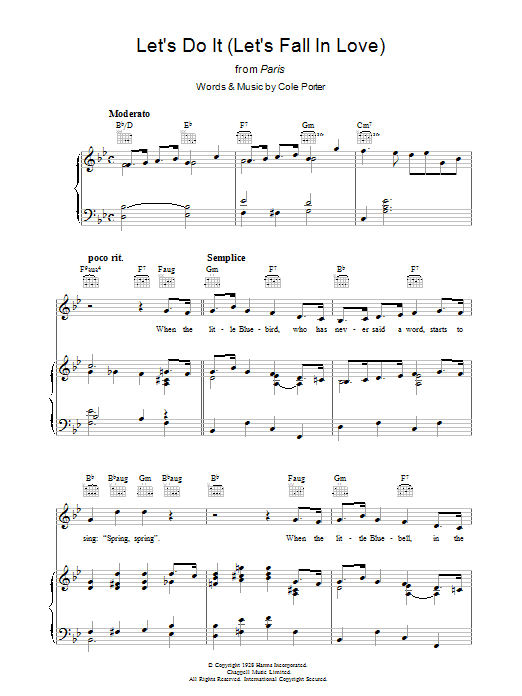 Download or print Cole Porter Let's Do It (Let's Fall In Love) sheet music, chords and digital score arranged for Easy Lead Sheet / Fake Book. This Jazz score includes 2 page(s).