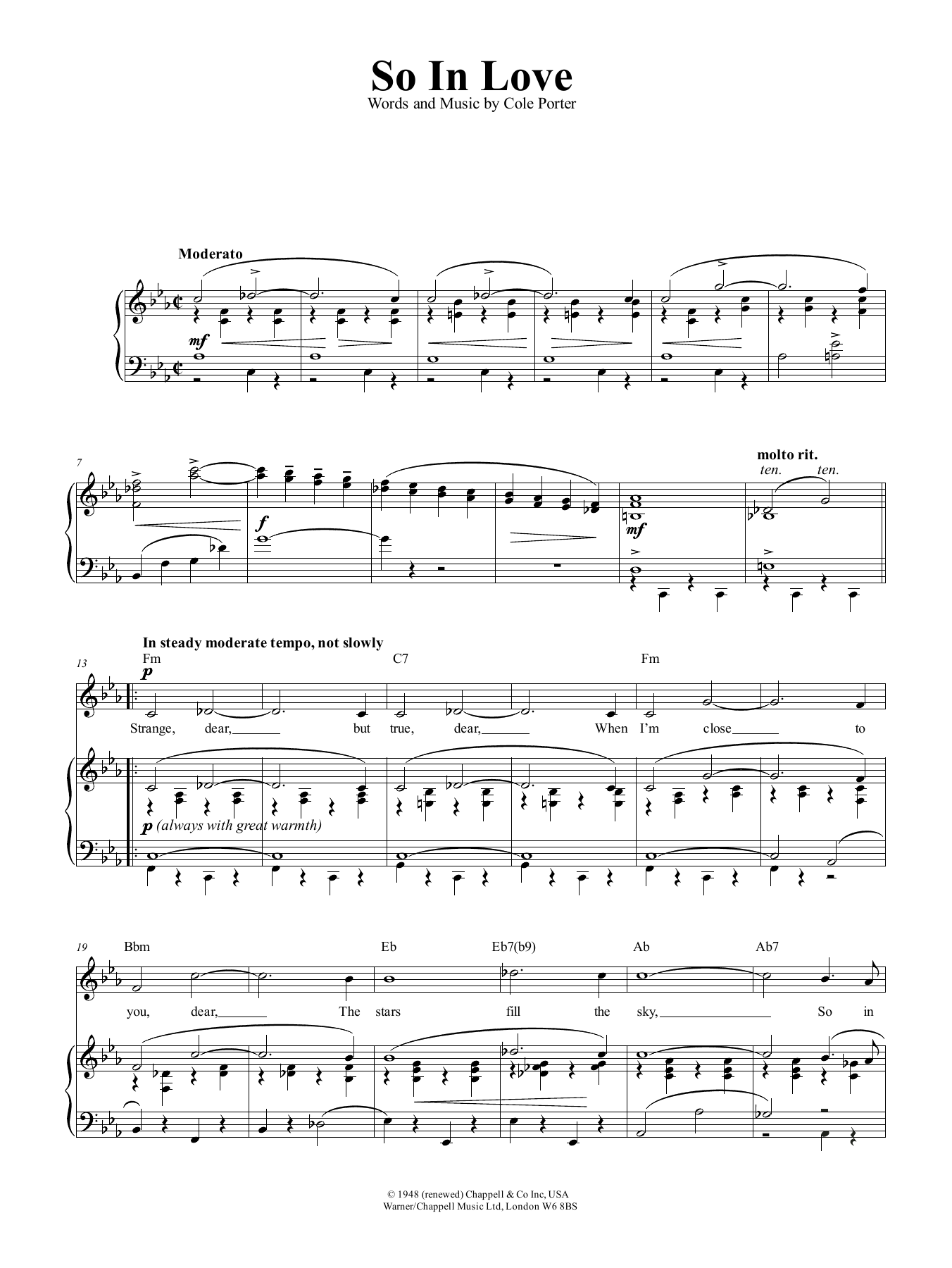 Download or print Cole Porter So In Love (from Kiss Me, Kate) sheet music, chords and digital score arranged for Piano & Vocal. This Love score includes 4 page(s).