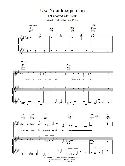 Download or print Cole Porter Use Your Imagination sheet music, chords and digital score arranged for Piano, Vocal & Guitar Chords. This Jazz score includes 7 page(s).