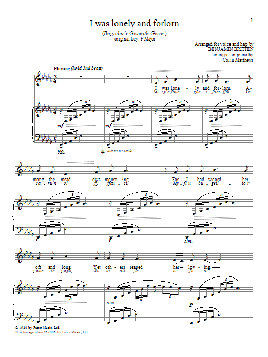 Download or print Colin Matthews I was lonely and forlorn sheet music, chords and digital score arranged for Piano & Vocal. This Classical score includes 4 page(s).