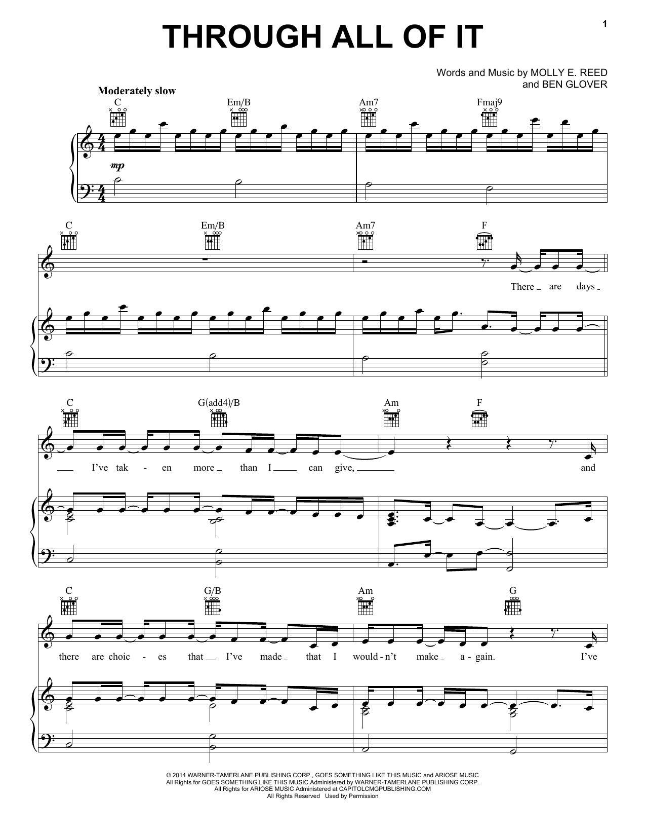 Download or print Colton Dixon Through All Of It sheet music, chords and digital score arranged for Piano, Vocal & Guitar Chords (Right-Hand Melody). This Christian score includes 8 page(s).