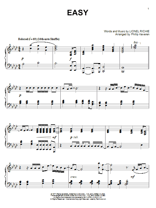 Download or print The Commodores Easy (arr. Phillip Keveren) sheet music, chords and digital score arranged for Piano Solo. This Love score includes 5 page(s).