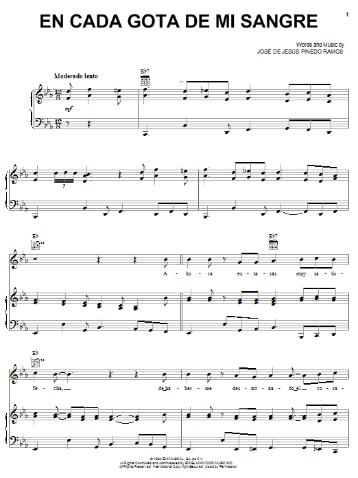 Quick facts En Cada Gota De Mi Sangre about digital sheet music