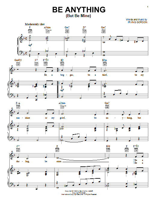 Download or print Connie Francis Be Anything (But Be Mine) sheet music, chords and digital score arranged for Piano, Vocal & Guitar Chords (Right-Hand Melody). This Standards score includes 3 page(s).