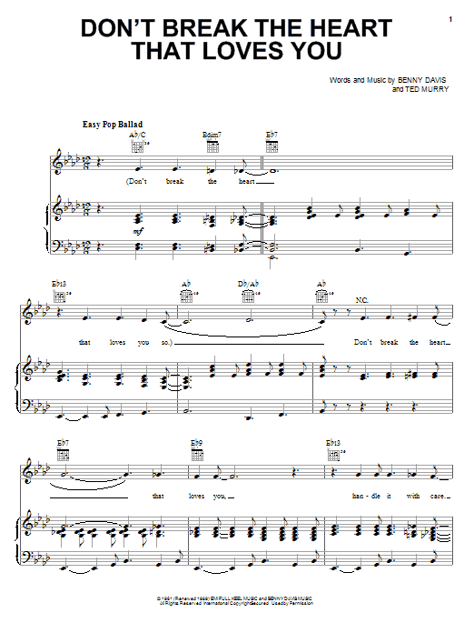 Quick facts Don't Break The Heart That Loves You about digital sheet music