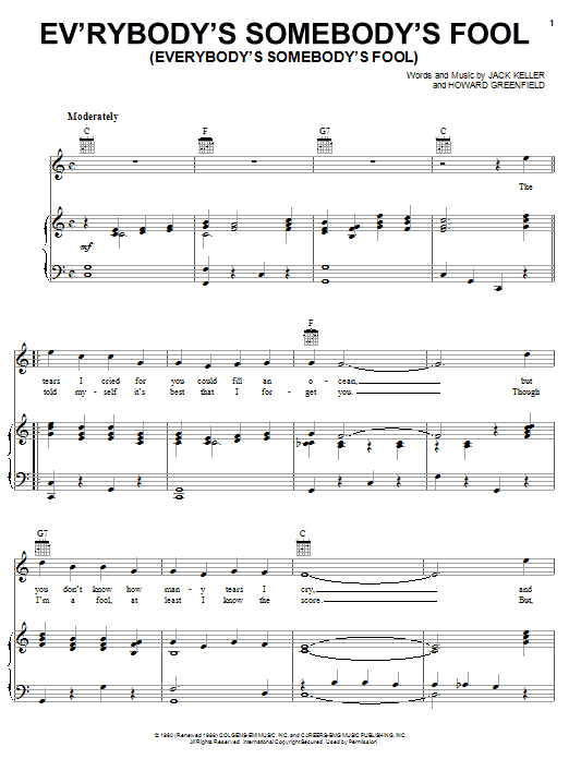 Download or print Connie Francis Ev'rybody's Somebody's Fool (Everybody's Somebody's Fool) sheet music, chords and digital score arranged for Lead Sheet / Fake Book. This Standards score includes 1 page(s).