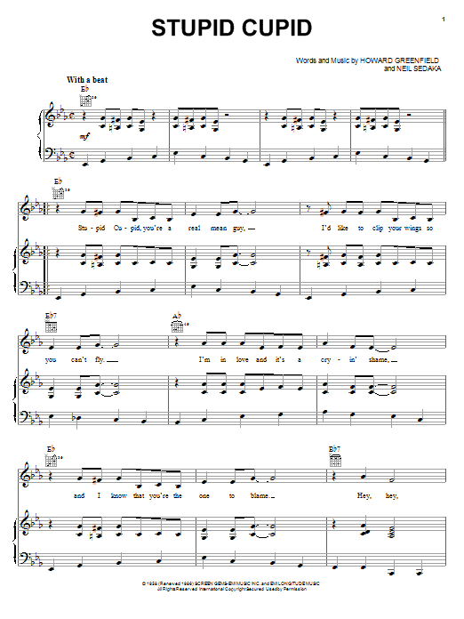 Download or print Connie Francis Stupid Cupid sheet music, chords and digital score arranged for Guitar Chords/Lyrics. This Pop score includes 2 page(s).