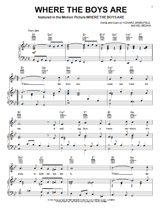Download or print Connie Francis Where The Boys Are sheet music, chords and digital score arranged for Easy Piano. This Pop score includes 3 page(s).