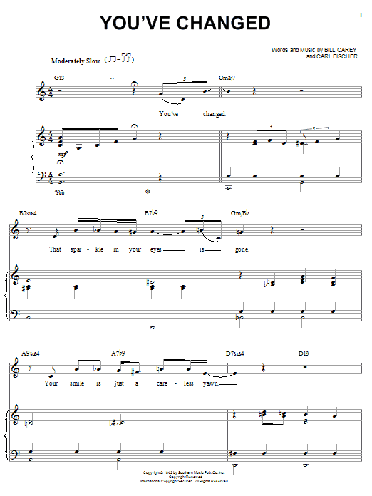 Download or print Billie Holiday You've Changed sheet music, chords and digital score arranged for Piano & Vocal. This Jazz score includes 4 page(s).