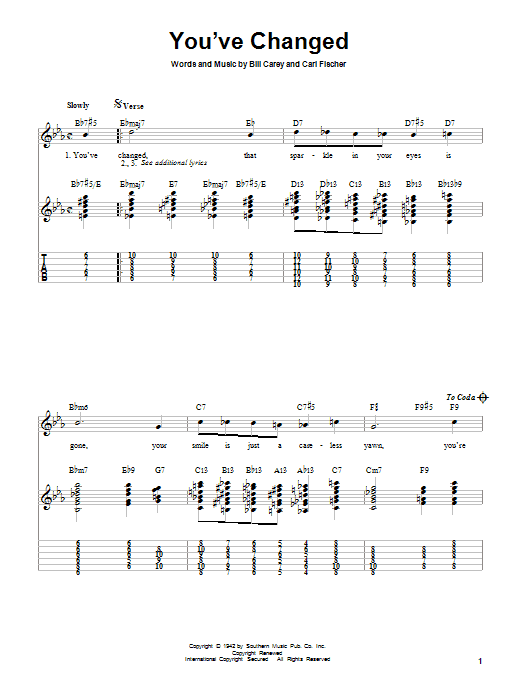 Download or print Connie Russell You've Changed sheet music, chords and digital score arranged for Piano, Vocal & Guitar Chords (Right-Hand Melody). This Country score includes 4 page(s).