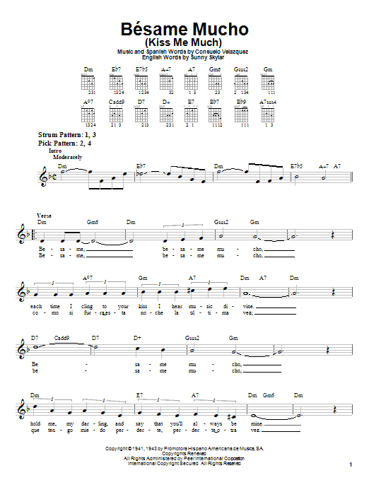 Download or print Consuelo Velazquez Bésame Mucho (Kiss Me Much) sheet music, chords and digital score arranged for Solo Guitar. This Latin score includes 3 page(s).
