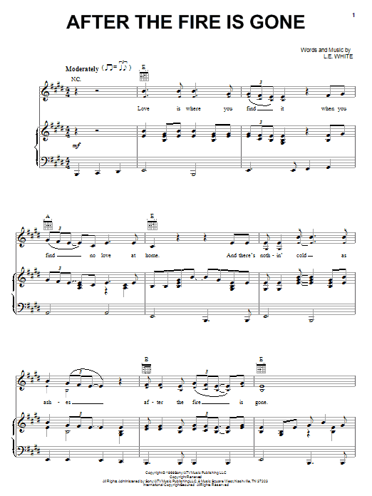 Download or print Conway Twitty & Loretta Lynn After The Fire Is Gone sheet music, chords and digital score arranged for Piano, Vocal & Guitar Chords (Right-Hand Melody). This Country score includes 4 page(s).