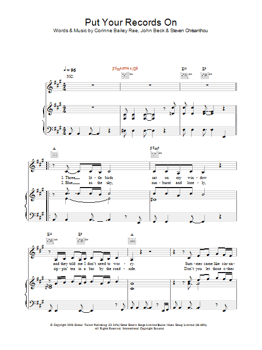 Download or print Corinne Bailey Rae Put Your Records On sheet music, chords and digital score arranged for Flute Solo. This Pop score includes 2 page(s).