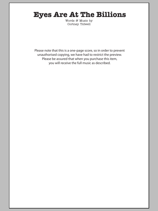 Download or print Cortney Tidwell Eyes Are At The Billions sheet music, chords and digital score arranged for Guitar Chords/Lyrics. This Pop score includes 2 page(s).