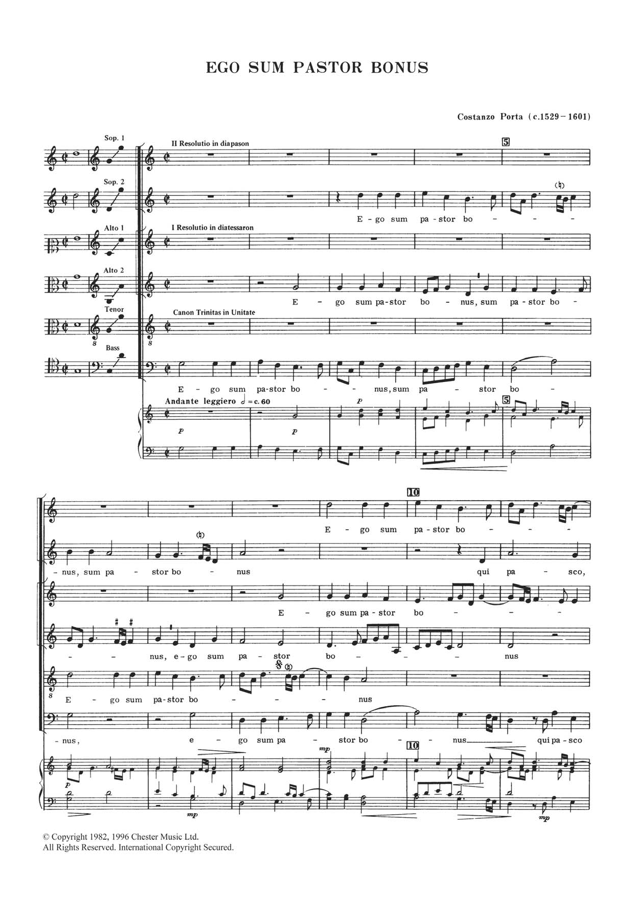 Download or print Costanzo Porta Ego Sum Pastor Bonus sheet music, chords and digital score arranged for SATB Choir. This Concert score includes 5 page(s).