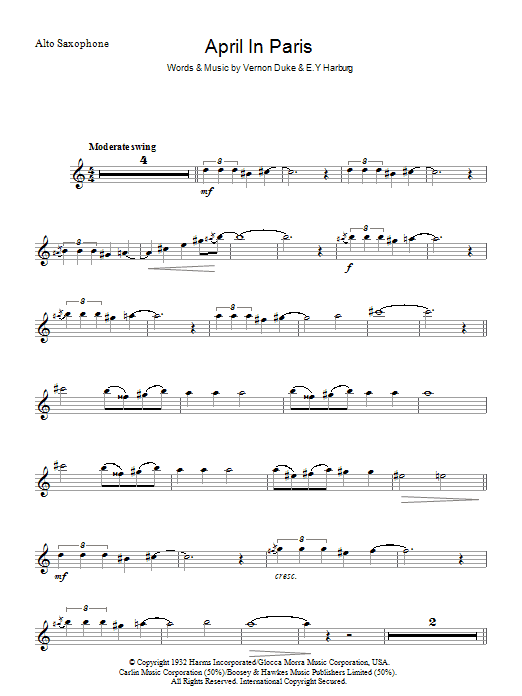Download or print Count Basie April In Paris sheet music, chords and digital score arranged for Lead Sheet / Fake Book. This Jazz score includes 2 page(s).