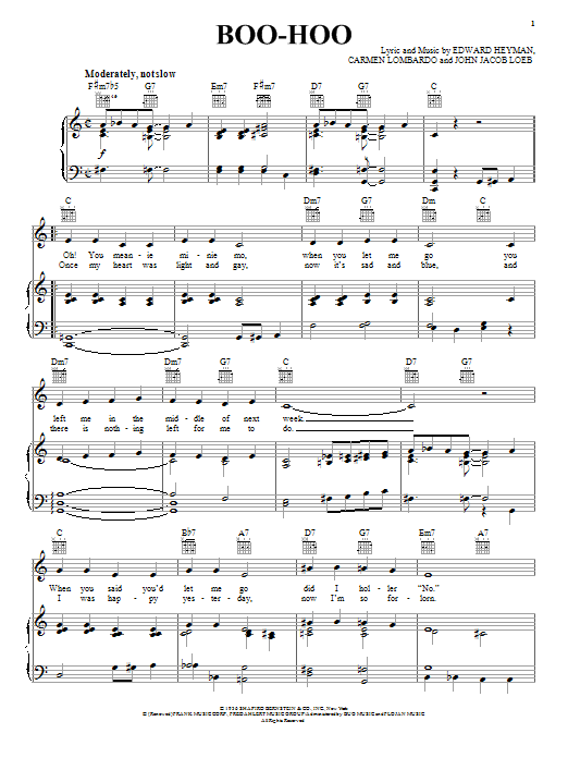 Download or print Count Basie Boo-Hoo sheet music, chords and digital score arranged for Piano, Vocal & Guitar Chords (Right-Hand Melody). This Jazz score includes 4 page(s).