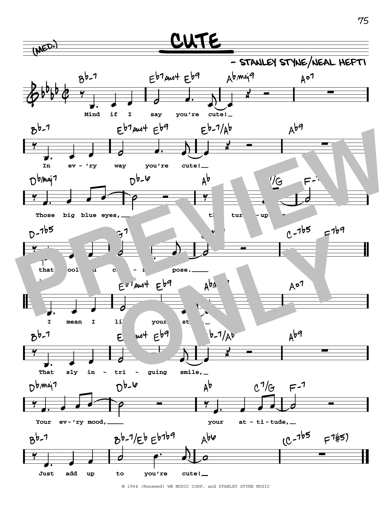 Download or print Count Basie Cute (Low Voice) sheet music, chords and digital score arranged for Real Book – Melody, Lyrics & Chords. This Jazz score includes 1 page(s).
