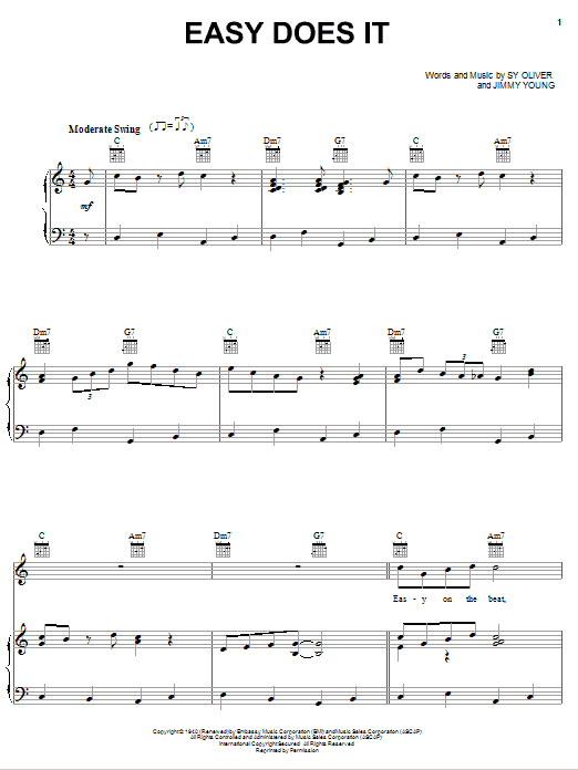 Download or print Count Basie Easy Does It sheet music, chords and digital score arranged for Piano, Vocal & Guitar Chords (Right-Hand Melody). This Jazz score includes 3 page(s).