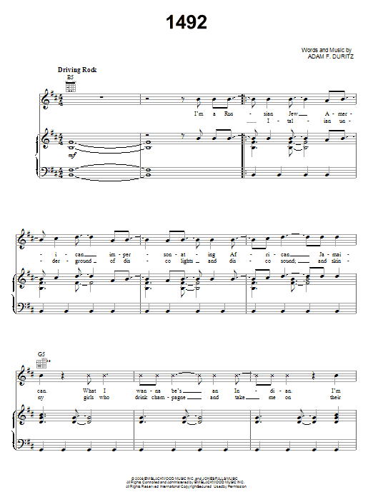 Download or print Counting Crows 1492 sheet music, chords and digital score arranged for Piano, Vocal & Guitar Chords (Right-Hand Melody). This Pop score includes 9 page(s).