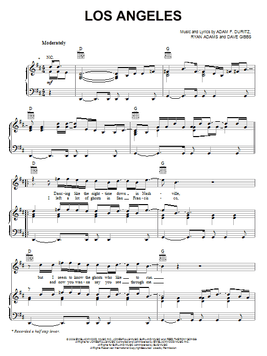 Download or print Counting Crows Los Angeles sheet music, chords and digital score arranged for Piano, Vocal & Guitar Chords (Right-Hand Melody). This Pop score includes 5 page(s).