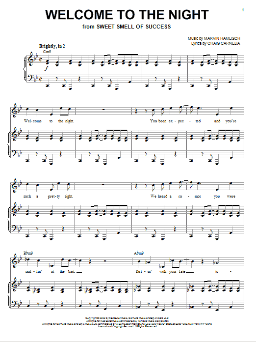 Download or print Craig Carnelia Welcome To The Night sheet music, chords and digital score arranged for Piano & Vocal. This Musical/Show score includes 6 page(s).