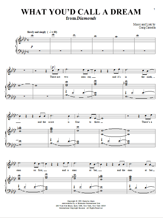 Download or print Craig Carnelia What You'd Call A Dream sheet music, chords and digital score arranged for Piano & Vocal. This Broadway score includes 6 page(s).