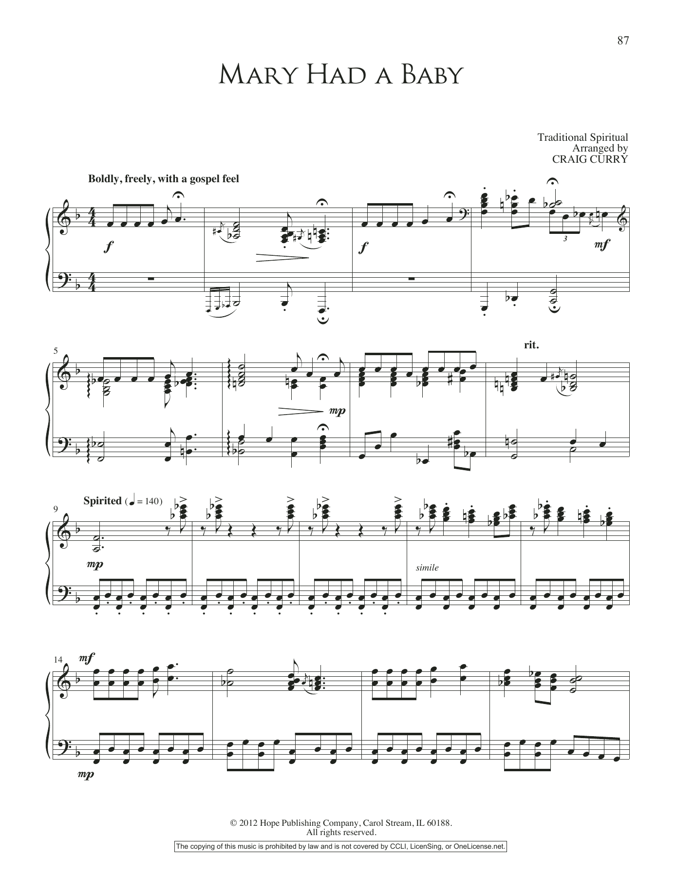 Download or print Craig Curry Mary Had A Baby sheet music, chords and digital score arranged for Piano Solo. This Hymn score includes 3 page(s).