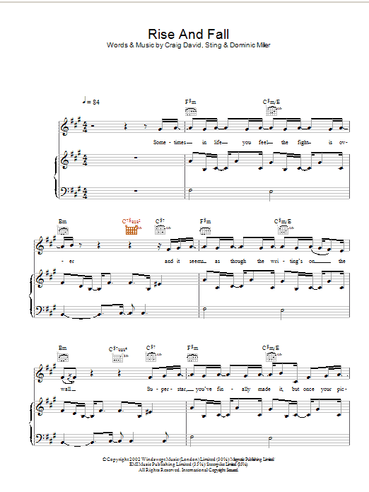 Download or print Craig David Rise & Fall sheet music, chords and digital score arranged for Guitar Chords/Lyrics. This R & B score includes 3 page(s).