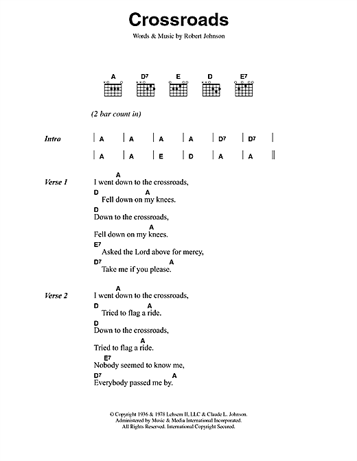 Download or print Cream Crossroads sheet music, chords and digital score arranged for Guitar Chords/Lyrics. This Rock score includes 2 page(s).