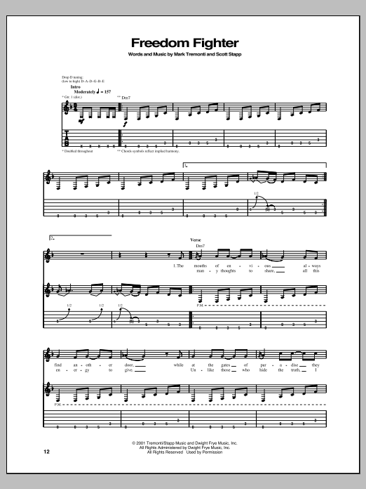 Download or print Creed Freedom Fighter sheet music, chords and digital score arranged for Guitar Tab. This Pop score includes 5 page(s).