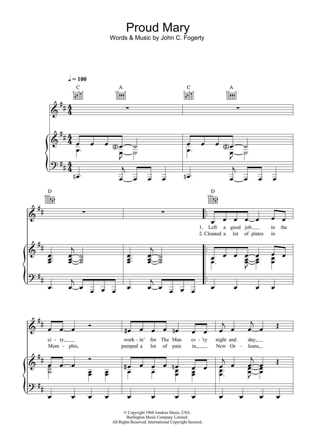 Download or print Creedence Clearwater Revival Proud Mary sheet music, chords and digital score arranged for Easy Guitar Tab. This Pop score includes 3 page(s).