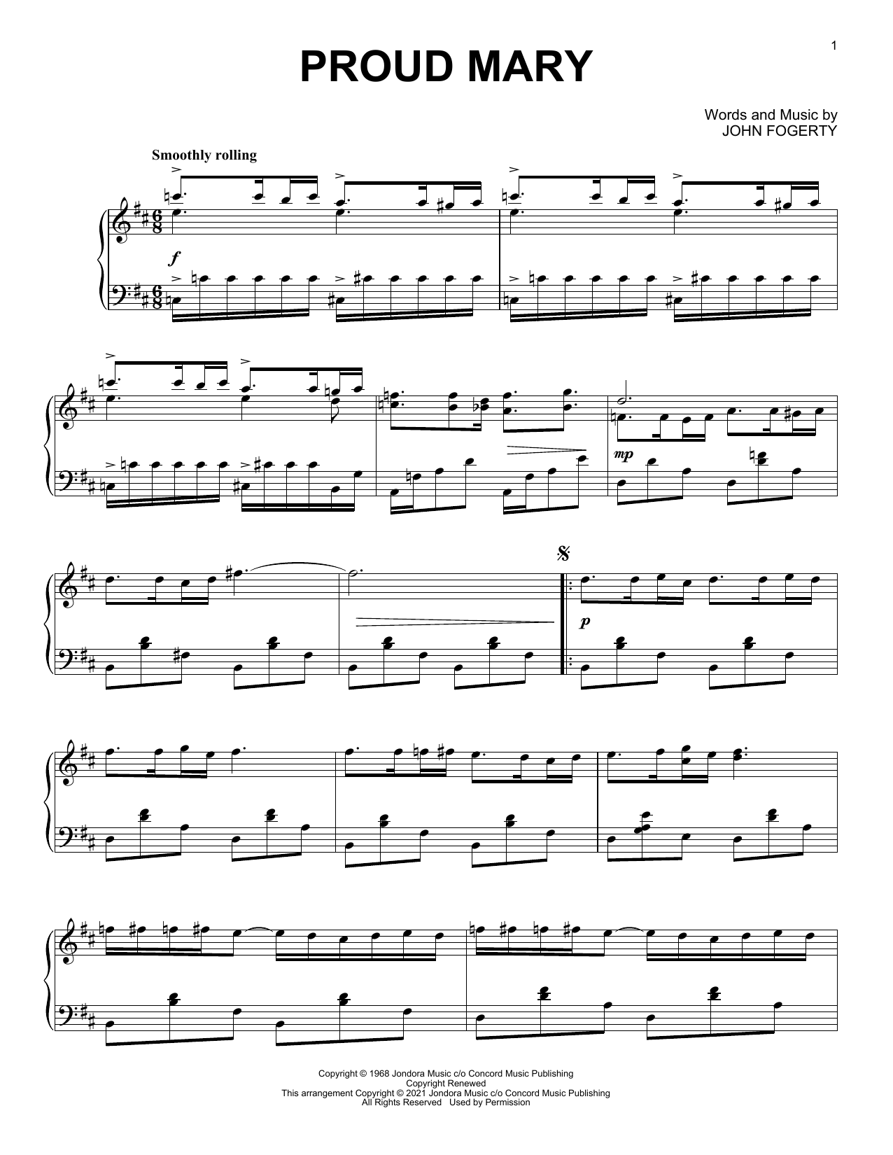 Download or print Creedence Clearwater Revival Proud Mary [Classical version] (arr. David Pearl) sheet music, chords and digital score arranged for Piano Solo. This Pop score includes 3 page(s).