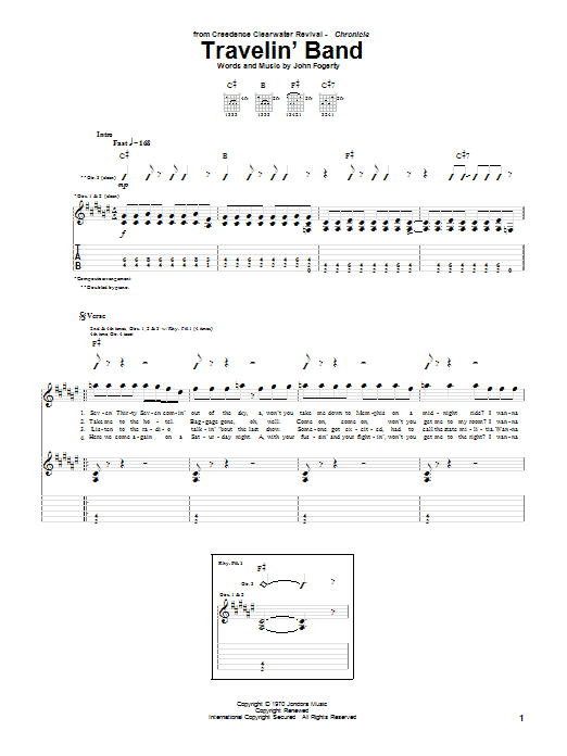 Download or print Creedence Clearwater Revival Travelin' Band sheet music, chords and digital score arranged for ChordBuddy. This Pop score includes 2 page(s).