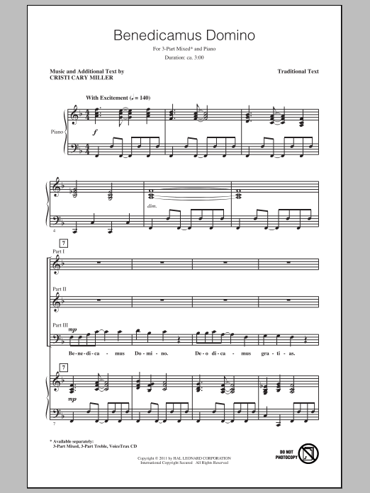 Download or print Cristi Cary Miller Benedicamus Domino sheet music, chords and digital score arranged for 3-Part Mixed Choir. This Latin score includes 14 page(s).
