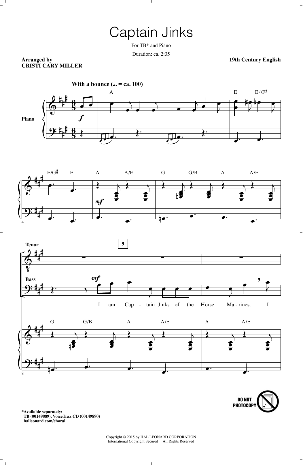 Download or print Cristi Cary Miller Captain Jinks sheet music, chords and digital score arranged for TB Choir. This Pop score includes 14 page(s).
