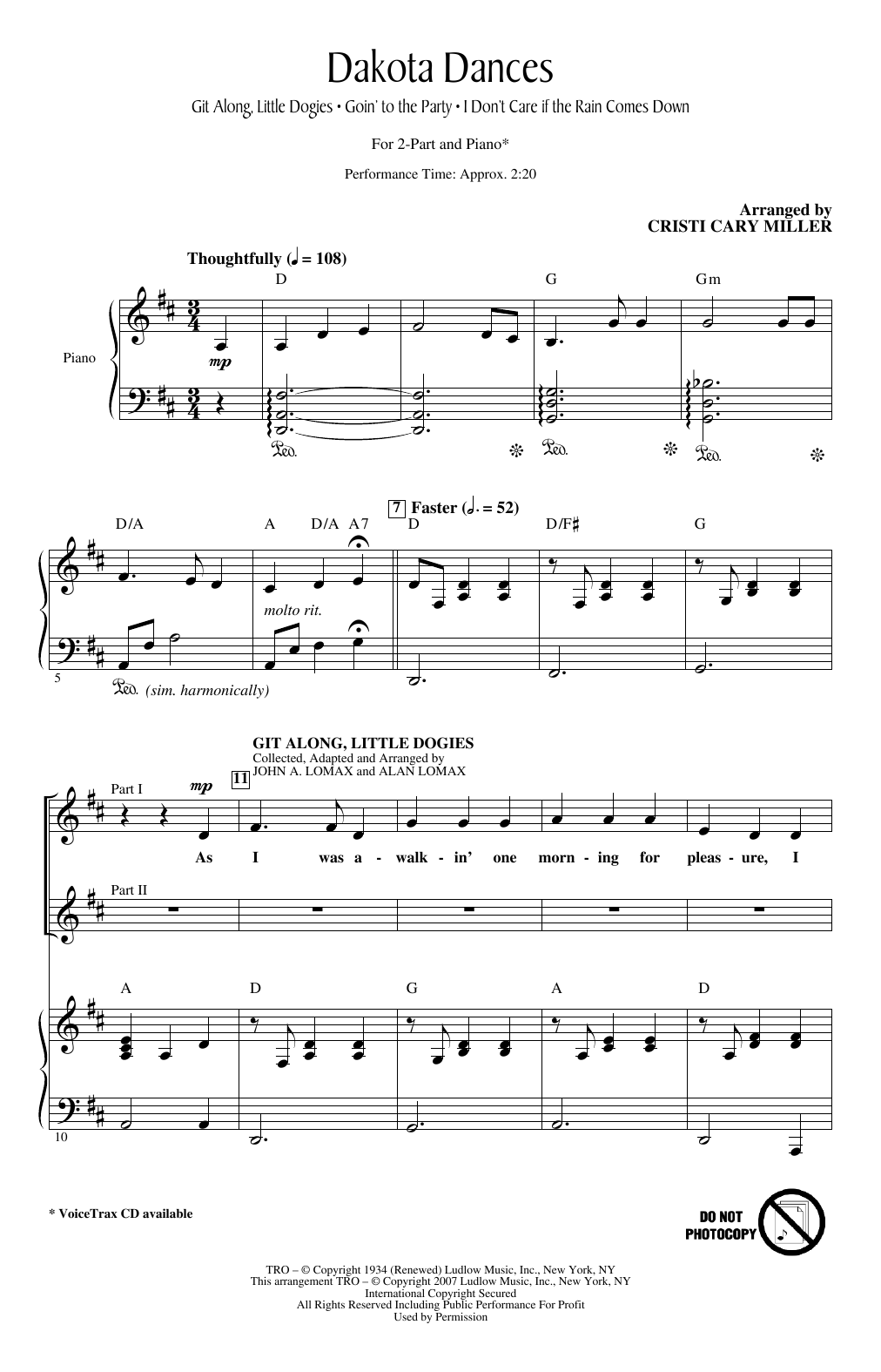 Download or print Cristi Cary Miller Dakota Dances sheet music, chords and digital score arranged for 2-Part Choir. This Children score includes 9 page(s).