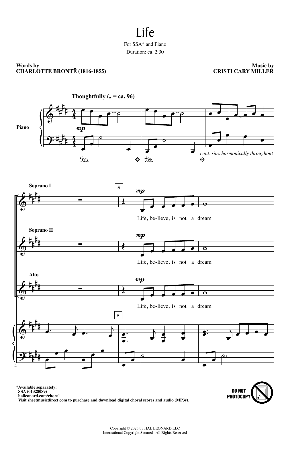 Download or print Cristi Cary Miller Life sheet music, chords and digital score arranged for SSA Choir. This Poetry score includes 10 page(s).