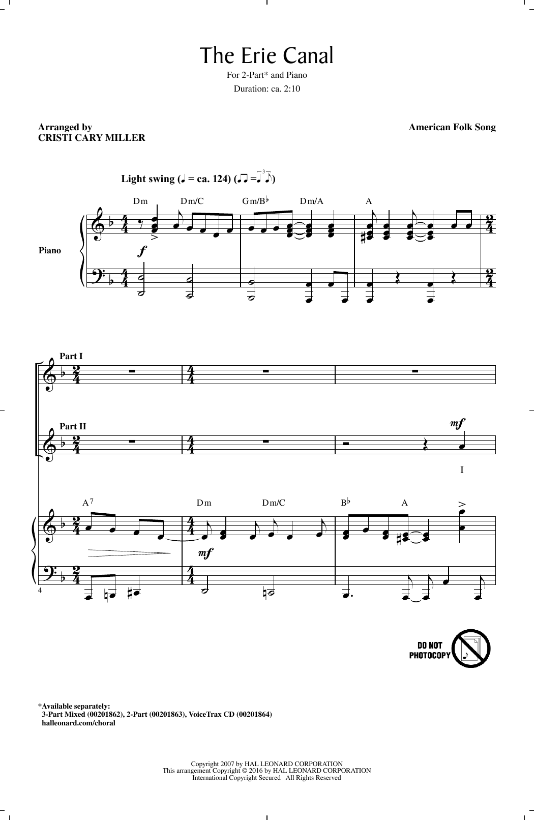 Download or print Cristi Cary Miller The Erie Canal sheet music, chords and digital score arranged for 3-Part Mixed Choir. This Folk score includes 10 page(s).